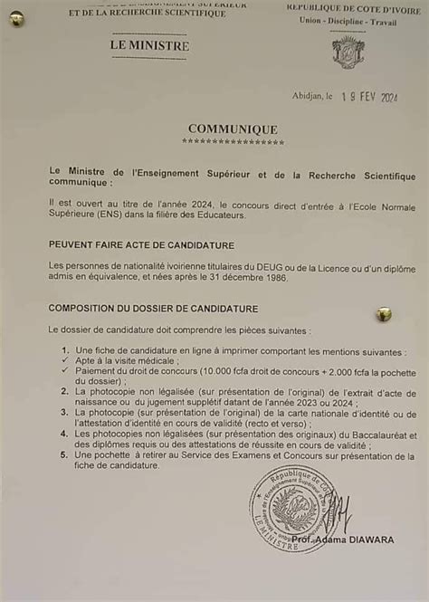 Mercredi 27 et jeudi 28 mars 2024 ; les différents concours d’entrée à l’ école normale supérieure d’abidjan (ens) ont été lancés. Concours d’entrée à l’ena 2025 :